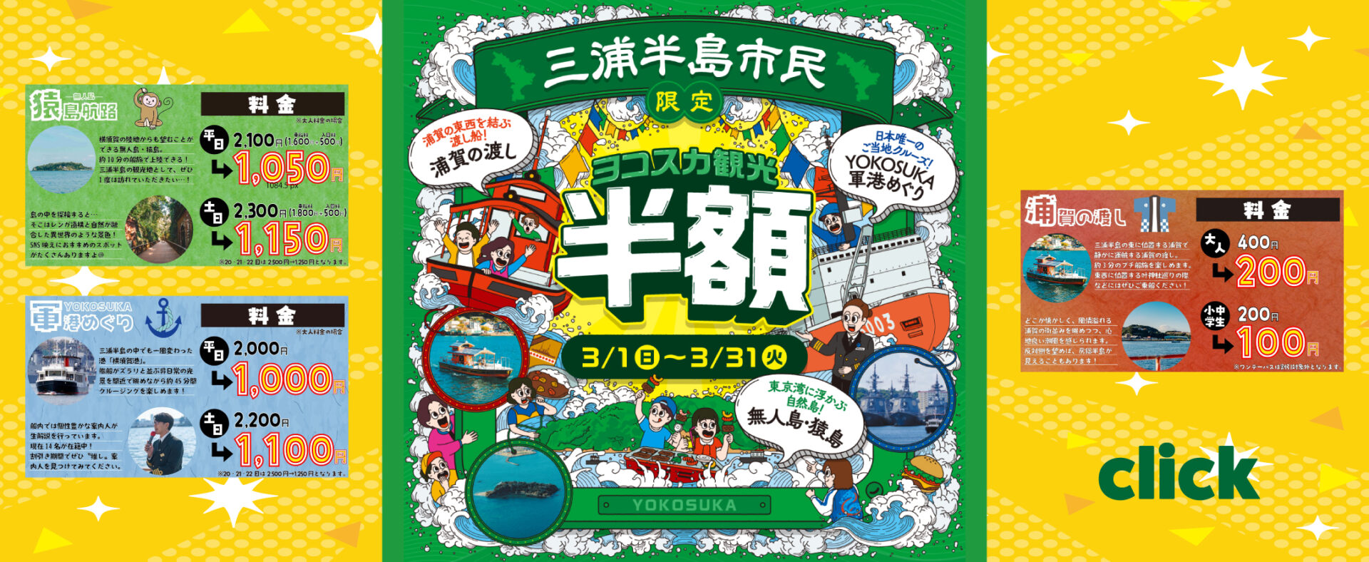 ・YOKOSUKA軍港めぐり、猿島航路(各航路) 10%OFF
