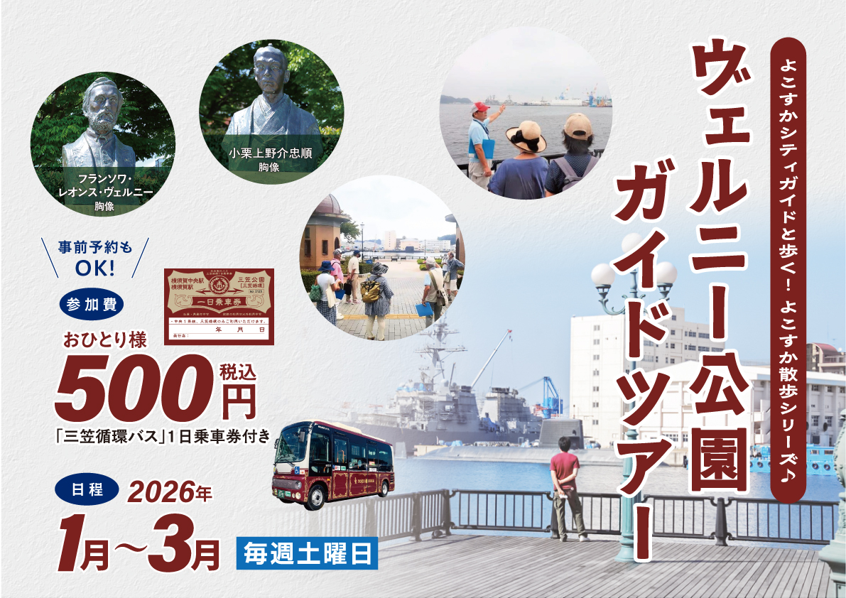 詳細は上記「事前予約はコチラ」から、よこすかシティガイド協ホームページ~よこすか散歩~よりご確認ください。