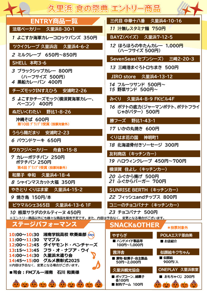 久里浜や周辺地域から自慢のグルメが大集結する「食の祭典」とお子さまに人気の「ハロウィンフェスタ」を同時開催します!