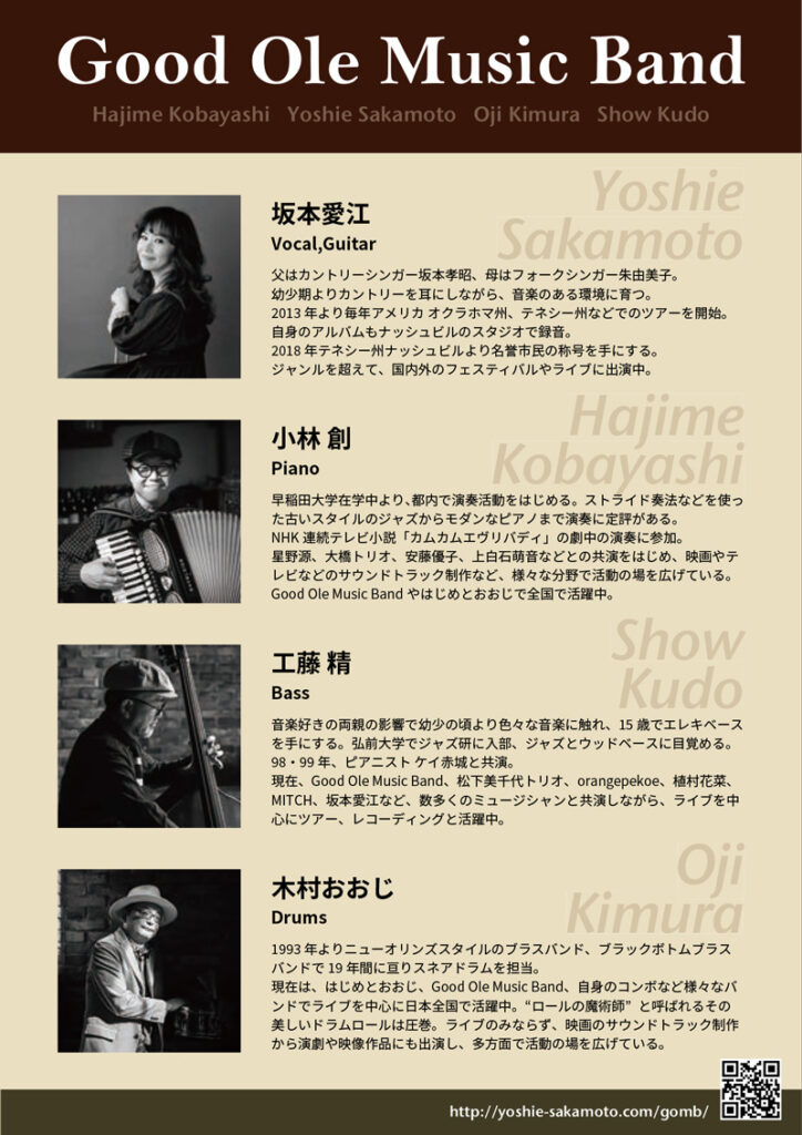 出演:坂本 愛江(Vocal&Guitar)・小林 創(Piano)・工藤 精(Bass)・木村おおじ(Drums)