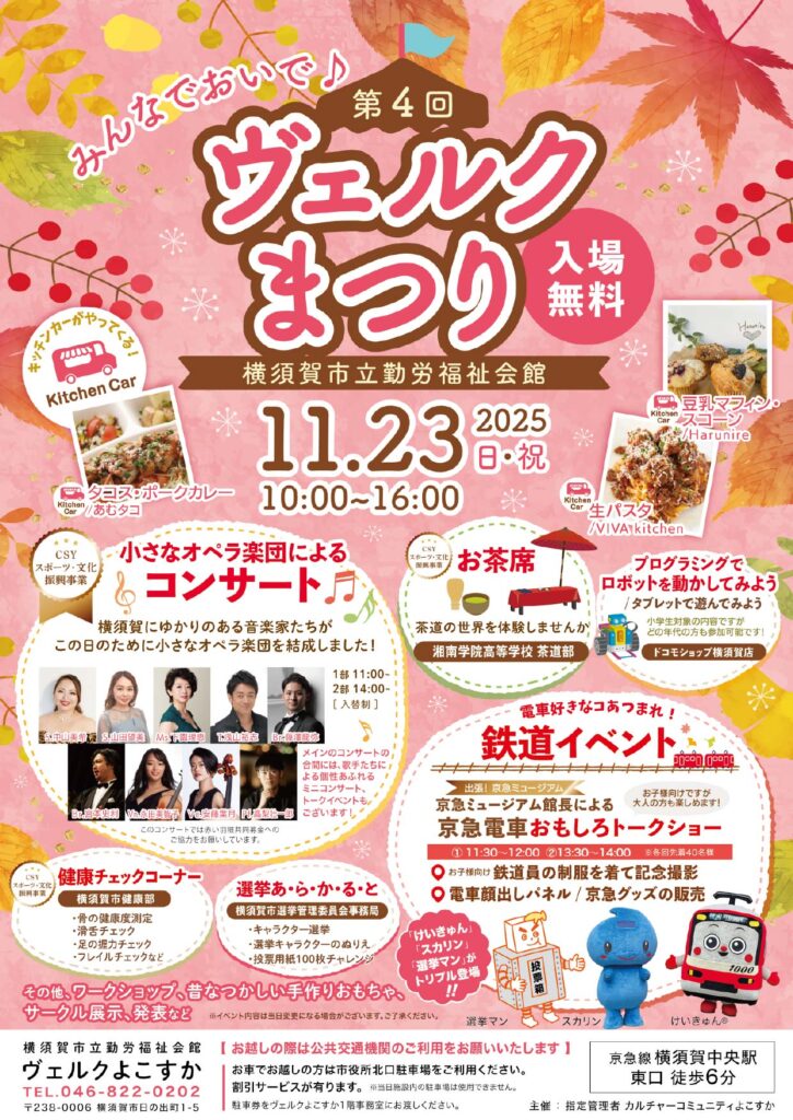 オペラ楽団のコンサート、鉄道イベントや文化振興イベント、横須賀市健康部による健康チェックコーナーなど、大人から子どもまで楽しめるイベントが盛りだくさん!キッチンカーも出店します。