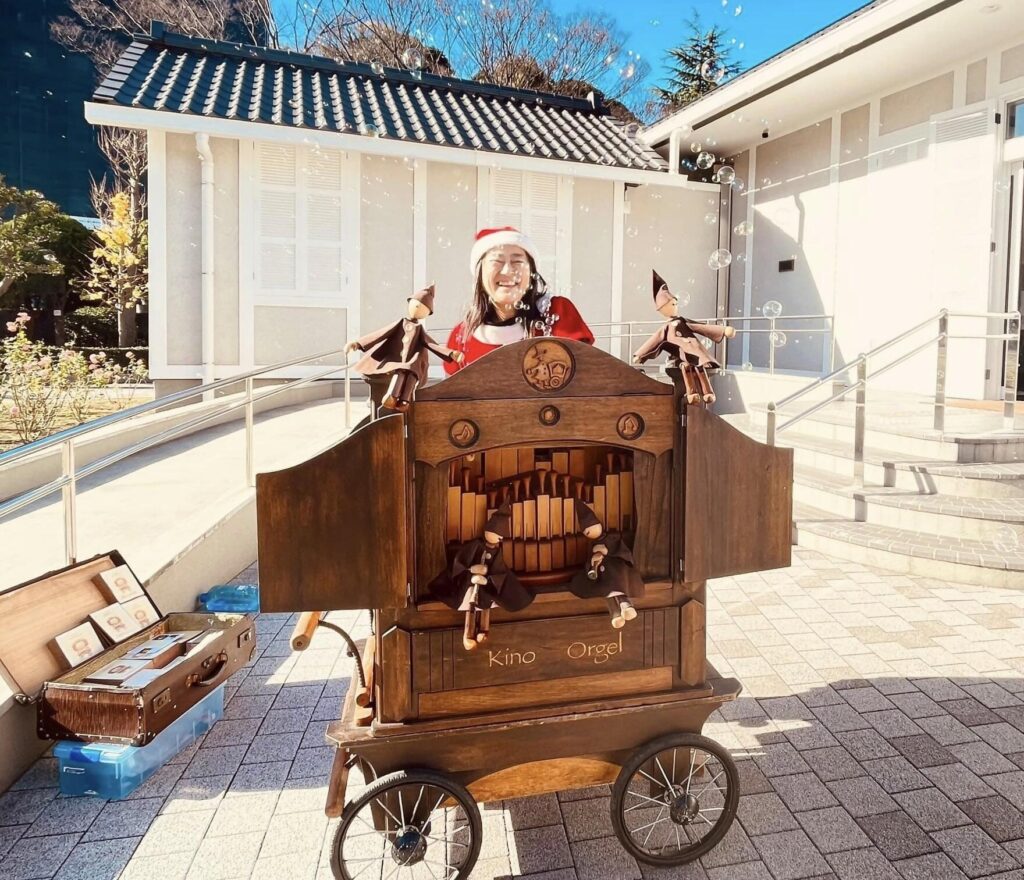 オリジナルのてまわしオルガンは、ハンドルを手で回す動きで曲が奏でられるとともに、