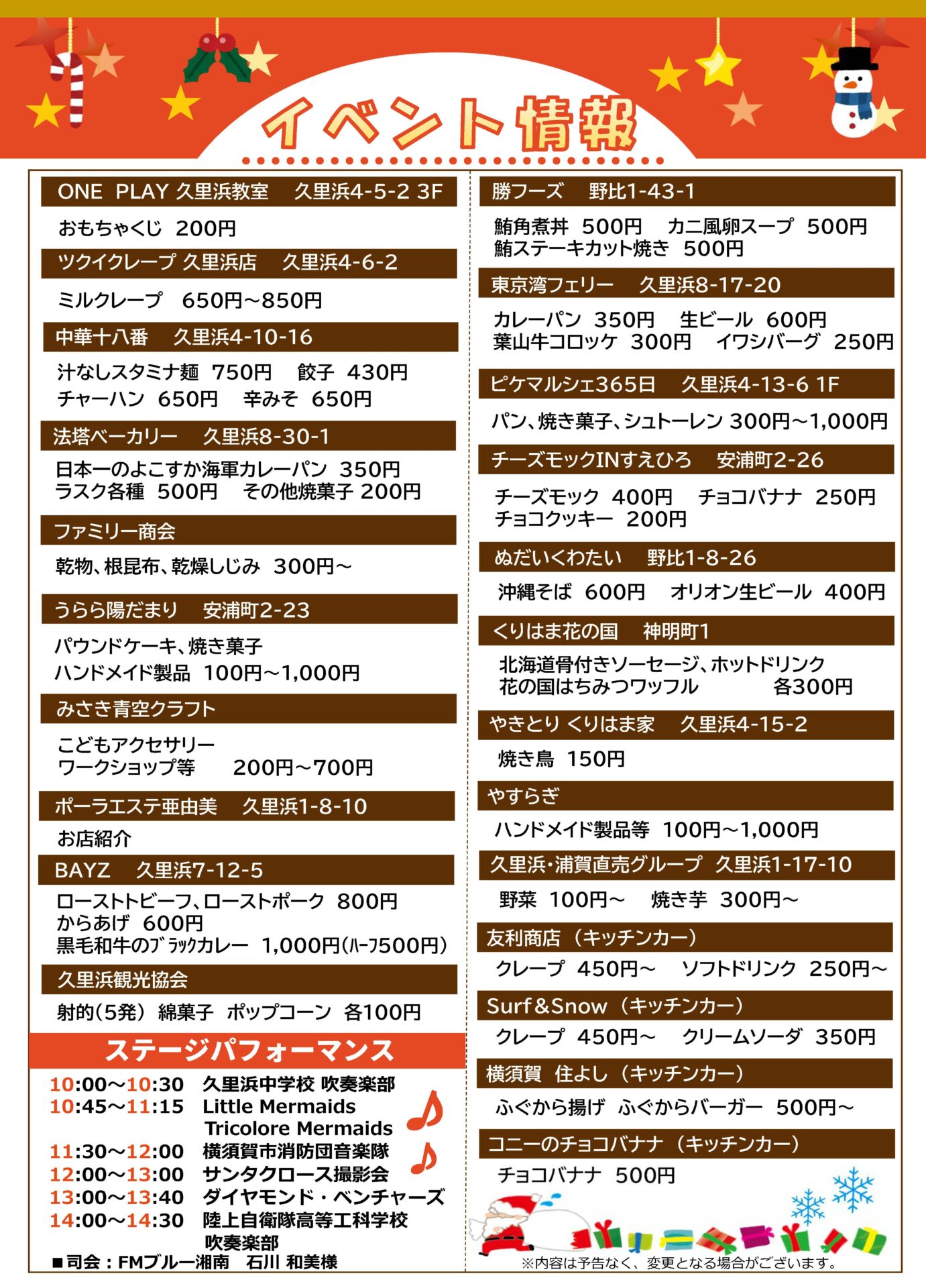 サンタクロース撮影会やお子さま向けポニーの乗馬体験のほか、吹奏楽・チアダンスのステージや、あたたかいグルメの出店など、冬のお楽しみが久里浜はろーど通りに大集結!