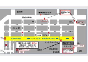 - 横須賀中央大通り(国道16号線側から横須賀中央駅方向)でパレードを実施します。