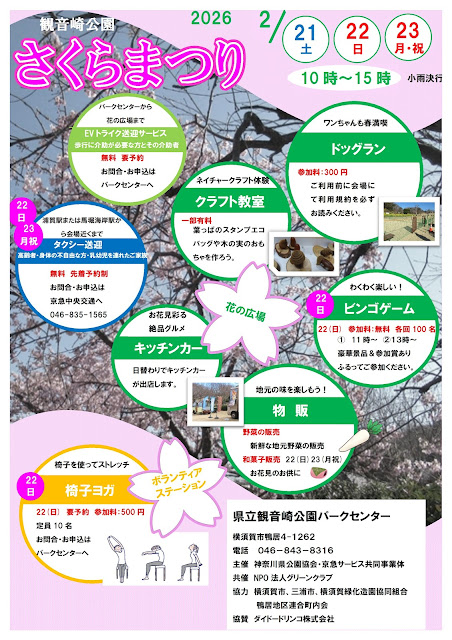 河津桜の開花に合わせ今年も「観音崎公園さくらまつり」を2/21(土)から2/23(月・祝)に花の広場にて開催します。🌸