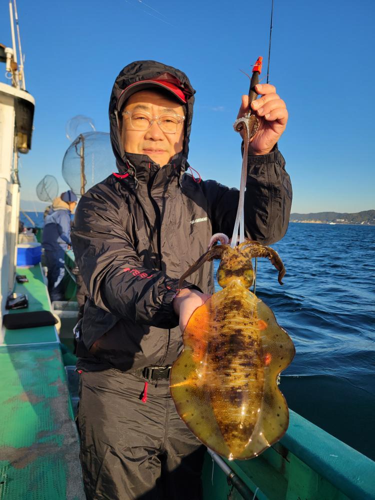 他モンゴウイカ0~2匹。今日は朝方が好調で全員アオリイカの顔を見ることができました。その後は静かな時間もありましたが、キロアップのイカも釣れました。本日はありがとうございました。 【天候情報】 水深8M~30M 水温:- 潮色と流れ:薄濁 ゆるい 風向きと強さ:北西 弱い 波高:0-0.5M 天候:晴れ 【釣果情報】 アオリイカ 0.3-1.1 kg 1-4 杯