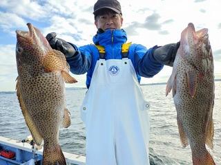 今日はほとんどの方がレンタルでウィリー五目、アマダイのリレーに出船しました!ウィリーで小アジが当たり泳がせで3連チャンヒットで大型オオモンハタ2匹!コマセでイナダ!ラインブレイクも…後半アマダイ! 【天候情報】 月齢:25.6 天気:曇り 気温:17℃/10℃ 水温:15.7℃ 日の出:06:17:日の入:16:36 日の入:16:36 月の出:02:22 潮位:87cm 波:東南東0.2m/s 風:北4.3m/s 満ち引き:上げ 中潮 【釣果情報】 オオモンハタ、1.6-1.7kg、0-2匹 イナダ、45cm、合計1匹 アマダイ、25-41cm、0-3匹