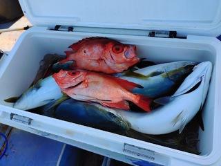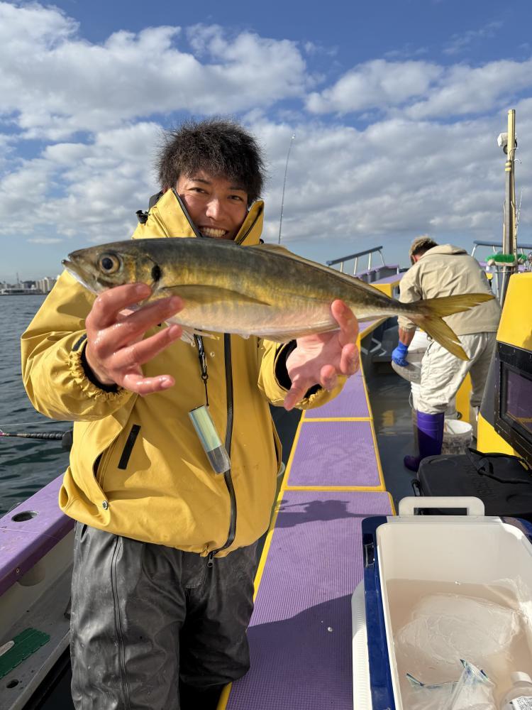 今日はシャクリ~イナダ五目に出船しました!朝一少しシャクリイナダ狙いに。 【天候情報】 月齢:26.8 天気:晴れ後時々曇り 気温:15℃/6℃ 水温:14.7℃ 日の出:06:43:日の入:16:32 日の入:16:32 月の出:04:07 潮位:99cm 波:南0.2m/s 風:北北西1.4m/s 満ち引き:上げ 中潮 【釣果情報】 イナダ、42-47cm、5-6匹 キントキ、30-35cm、3-5匹 イサキ、26-30cm、0-2匹 モンゴウイカ、0.6-0.8kg、0-2匹