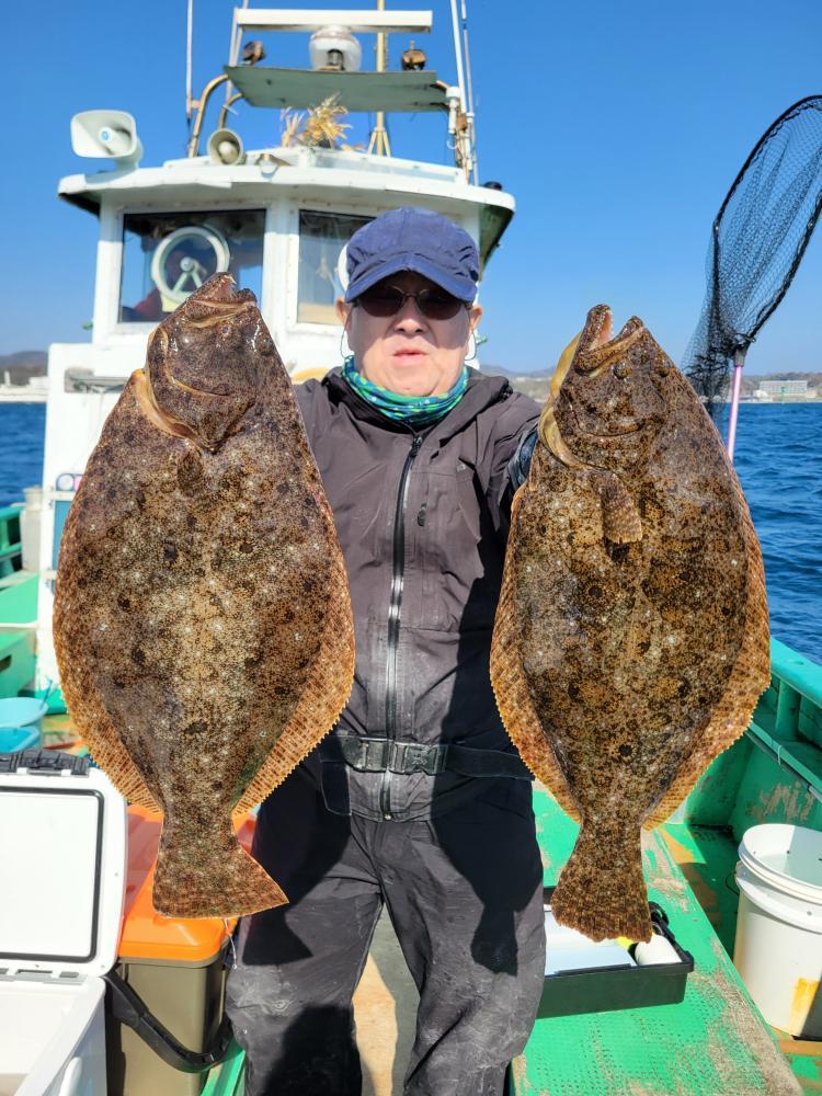 他マゴチ。今日は小魚反応はポイントによって確認はでき、反応が動いている感じもありました。しかし状況的には連続ヒットが1度あっただけで全体的にアタリは少ない状況でした。本日はありがとうございました。 【天候情報】 水深10M~40M 水温:- 潮色と流れ:澄み ゆるい 風向きと強さ:北西 弱い 波高:0-0.5M 天候:晴れ 【釣果情報】 ヒラメ 0.8-2.8 kg 0-3 枚