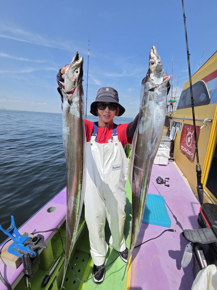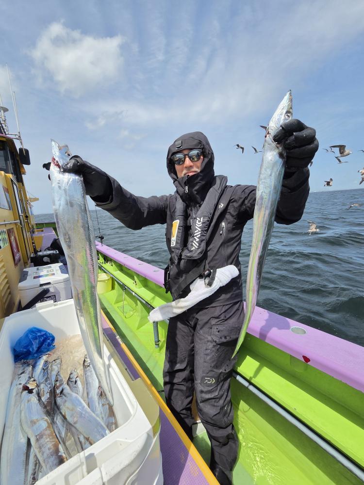 反応はあるもののアタリなく?しばらくやっているとヒットするもののバレてしまい…その後も転々と反応当て変えてみるものの変化なく。中盤に好反応に当たり、チャンスタイムに!中型から良型主体に! 【天候情報】 水温:17.9度 潮色と流れ:- 風向きと強さ:- 波高:- 天候:- 【釣果情報】 タチウオ 75-100 cm 2-7 本