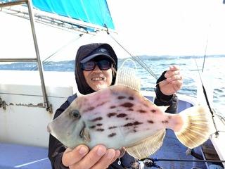今日はカワハギに出船しました! 【天候情報】 月齢:10.6 天気:晴れ後時々曇り 気温:25℃/14℃ 水温:16.4℃ 日の出:04:54:日の入:18:25 日の入:18:25 月の出:15:12 潮位:61cm 波:南0.6m/s 風:南8.1m/s 満ち引き:上げ 中潮 【釣果情報】 カワハギ、18-29cm、1-5匹