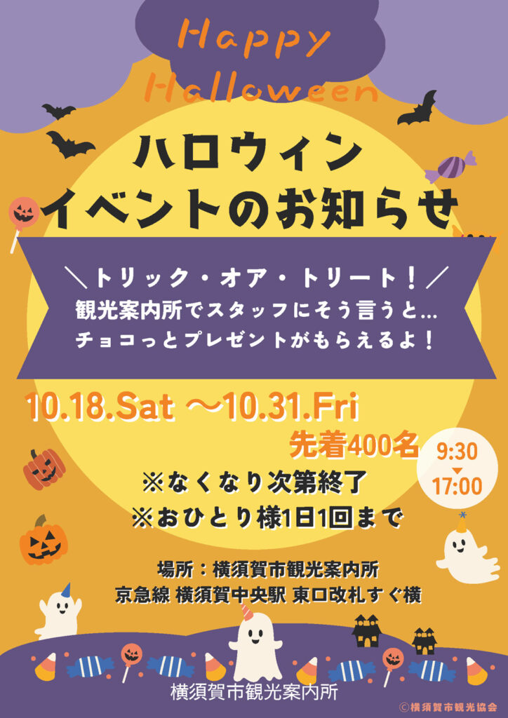 横須賀市観光案内所では、10/18~10/31までハロウィンイベントを開催します🍬🍭